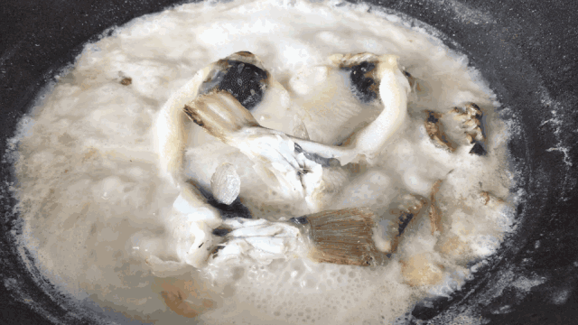 一大勺豆油下鍋去,噼裏啪啦的響聲讓人心頭震顫,看着魚身在油裏慢慢被煎透,廚房裏就已經有香味了。葱薑蒜下鍋炒香,河豚順着鍋邊丟進鍋裏,火要大,料要足,看着鍋裏咕嘟着的條條河豚,就能想到味道。