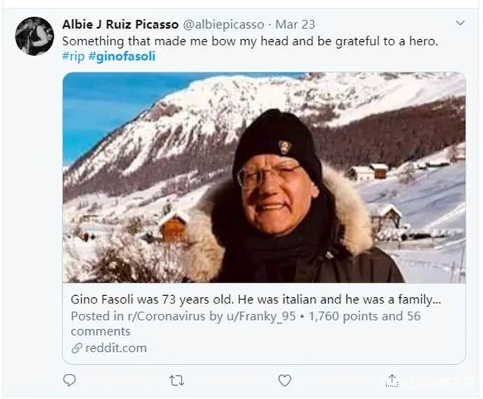 可令人悲傷的是,他卻不幸感染了新冠病毒,於3月14日病逝。