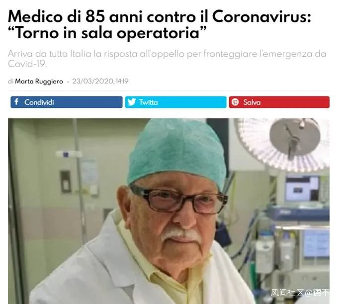 根據意大利媒體的報道,這位老人認為在這種局面下,身為醫生他就應該做出奉獻乃至犧牲,去挽救病人的生命,並認為這與自己的年齡多大無關。