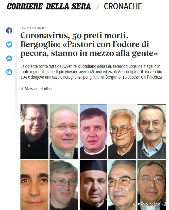 另外,除了這些已經病逝的,意大利還有更大量的神職人員已經感染了新冠病毒,其中有的人已經出現了重症。