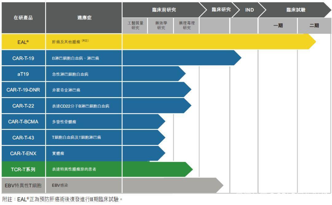 永泰生物的核心在研產品EAL® (擴增活化淋巴細胞)在癌症治療的臨牀醫用方面具有逾10年的往績,是中國唯一獲准進入實體瘤治療II期臨牀試驗的免疫細胞產品,為預防早期肝癌復發及延長早期肝癌患者無復發生存期及總生存期。