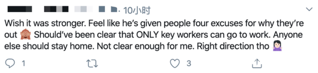 “我希望措施更嚴格,他應該明確只有重要崗位工作人員才能去上班,其他人都應該待在家裏。雖然這些措施的方向是正確的,但對我來説還不夠清楚。”