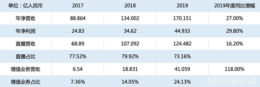 直播營收佔比下降,增值業務營收佔比上升,這使得收入結構相對多元化,社交平台的商業價值日益凸顯。