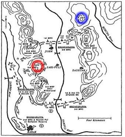 我營受命派出兩個連及一個迫擊炮連於6月4日午夜至5日凌晨期間佔領谷地的東西兩側的一組高地,其餘部隊配合阿富汗政府軍第2營從谷地南部向北清掃。計劃奪取給養並抓走村莊中的青年補充入阿富汗政府軍。我營得到一個D-30 122榴炮連和一個BM-21火箭炮連的火力加強。