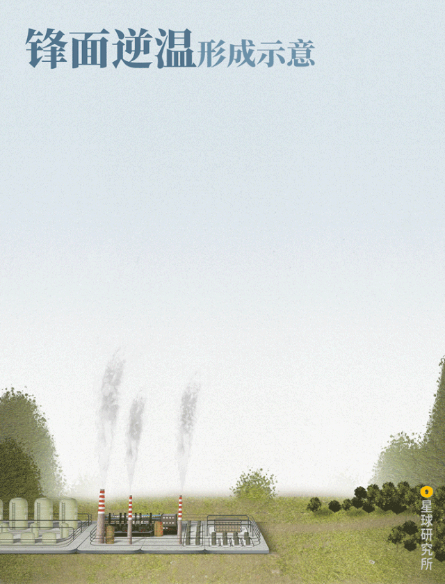 (鋒面逆温形成示意,製圖@鄭伯容/星球研究所)