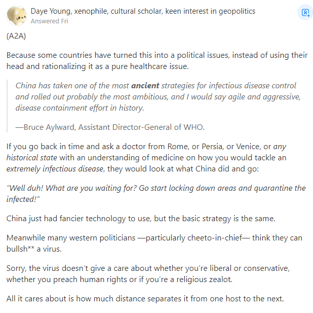 為什麼其他國家不能像中國那樣阻止病毒擴散?網友:弱小和無知從來都不是生存的障礙,傲慢才是