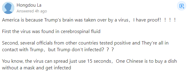 美國是因為特朗普的大腦被病毒佔領了,我有證據