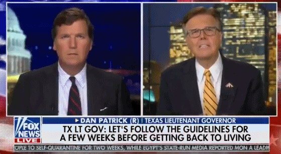 現年69歲的美國得克薩斯州副州長丹·帕特里克(Dan Patrick)。當地時間3月23日晚,帕特里克接受美國福克斯新聞採訪,他表示包括自己在內的很多年長者會為年輕人做出犧牲,以拯救美國經濟。