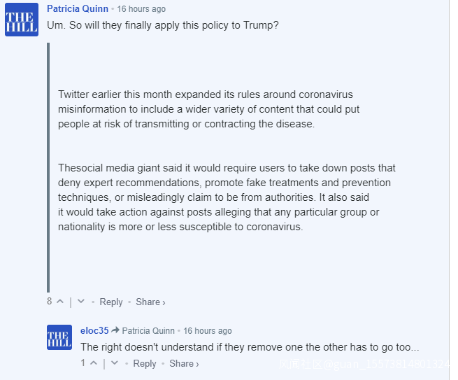 然而,在《國會山報》的報道下面,有網民就調侃説,如果推特真的按照這些人的定義和標準去刪除趙立堅的網帖並封號,那特朗普的賬號早就應該被封殺了……。。