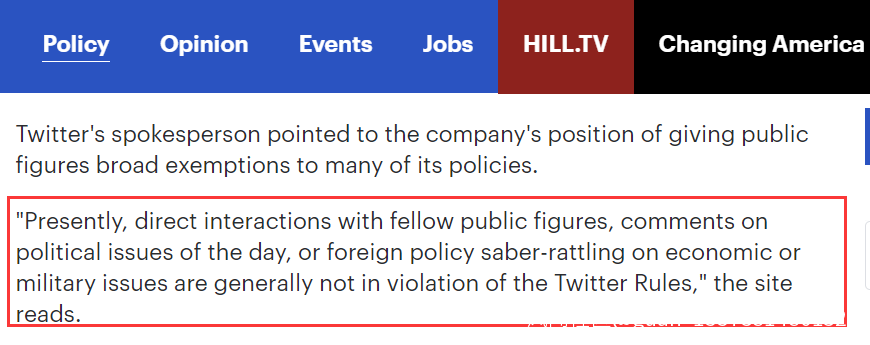 而在推特看來,他們則認為趙立堅的行為本身並沒有違反推特的規則,稱“目前,直接與其他公眾人物互動,評論熱點政治議題,或是在經濟或軍事問題上進行外交上的口水戰,通常來説並不違反推特的規則”。