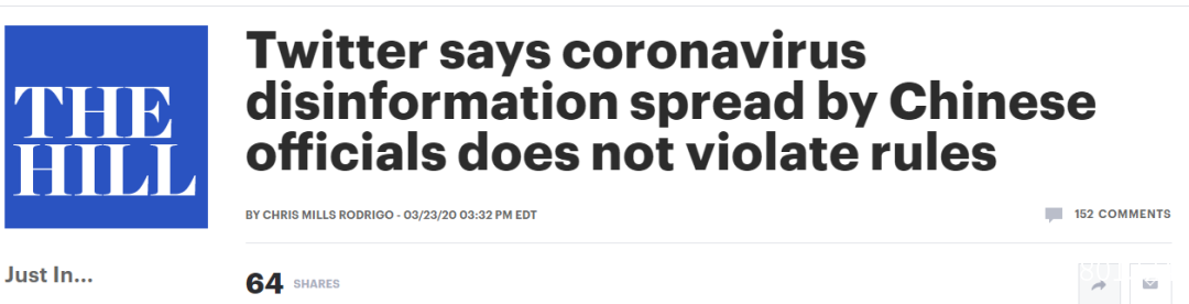 根據美國《國會山報》的報道,此次美國一些國會議員和政客要求推特刪除中國官方的賬號和帖文,主要是源於中國外交部發言人趙立堅此前在推特上針對新冠病毒來源問題而向美方發出的質問。