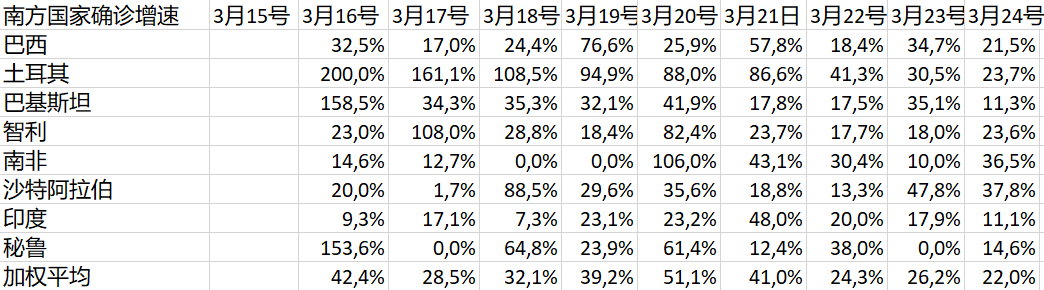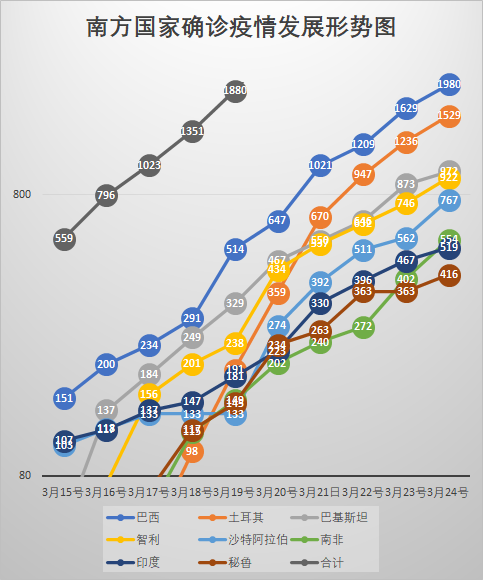 **這裏最危險的是巴西和土耳其。它們底數很高,增速又猛。**照現在的速度,三天翻一番,10天之內,就可以達到萬級或離之不遠。