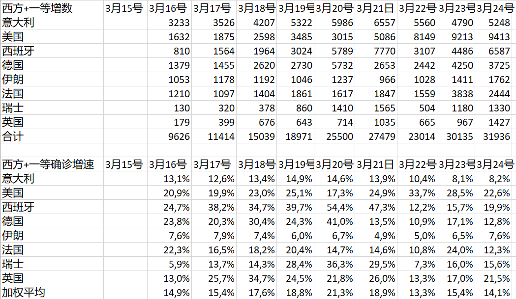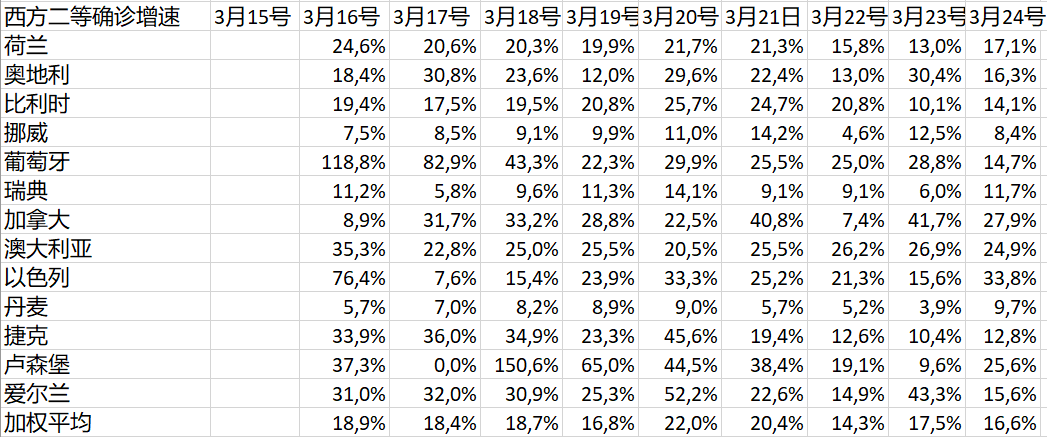 整體加權增長比昨天略降,但增速依然可觀。西方整體,還看不清頂部在哪裏。