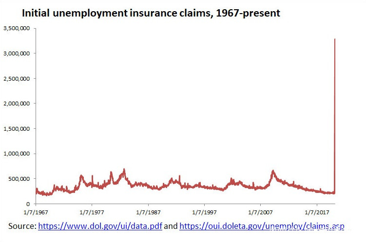 美國至3月21日當週初請失業金人數錄得328萬,是2008年金融危機時候的4倍!