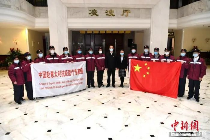 3月12日,由國家衞健委和中國紅會組建的抗疫醫療專家組一行9人攜31噸醫療物資抵達意大利首都羅馬;6天后,第二批中國抗疫醫療專家組飛抵米蘭;25日,第三批抗疫醫療專家組一行14人前往米蘭……