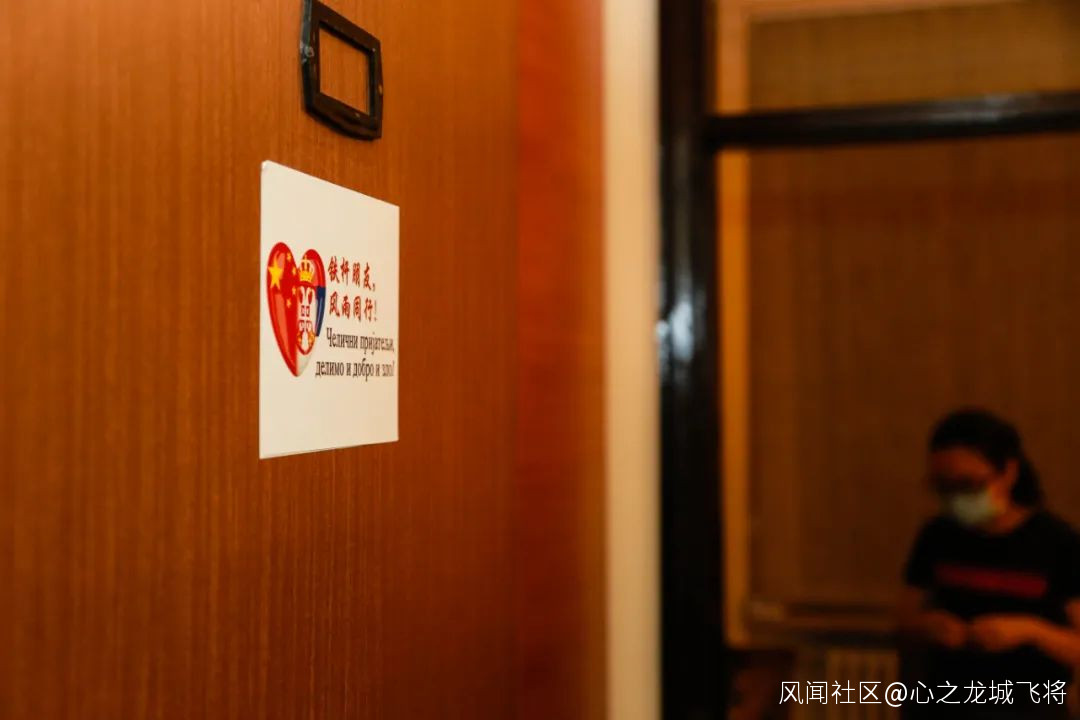3月24日,在塞爾維亞首都貝爾格萊德,中國援塞醫療專家宿舍的門上貼着寫有“鐵桿朋友,風雨同行”字樣的貼紙。新華社記者石中玉攝