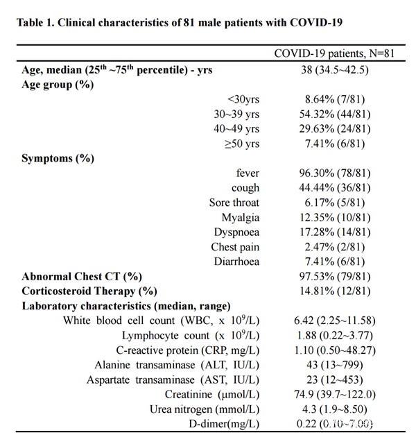 武漢大學中南醫院生殖醫學中心副教授張銘等人在預印本網站MedRxiv上發表了一篇論文,題為《新冠感染對男性性腺功能影響的單中心研究》(Effect of SARS-CoV-2 infection upon male gonadal function: A single center-based study)。
