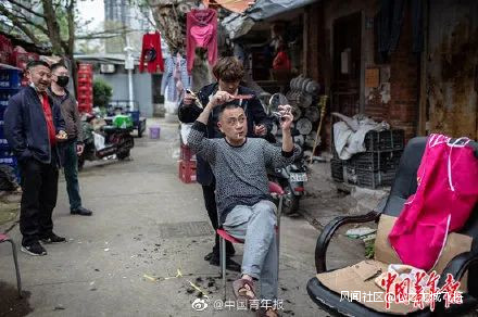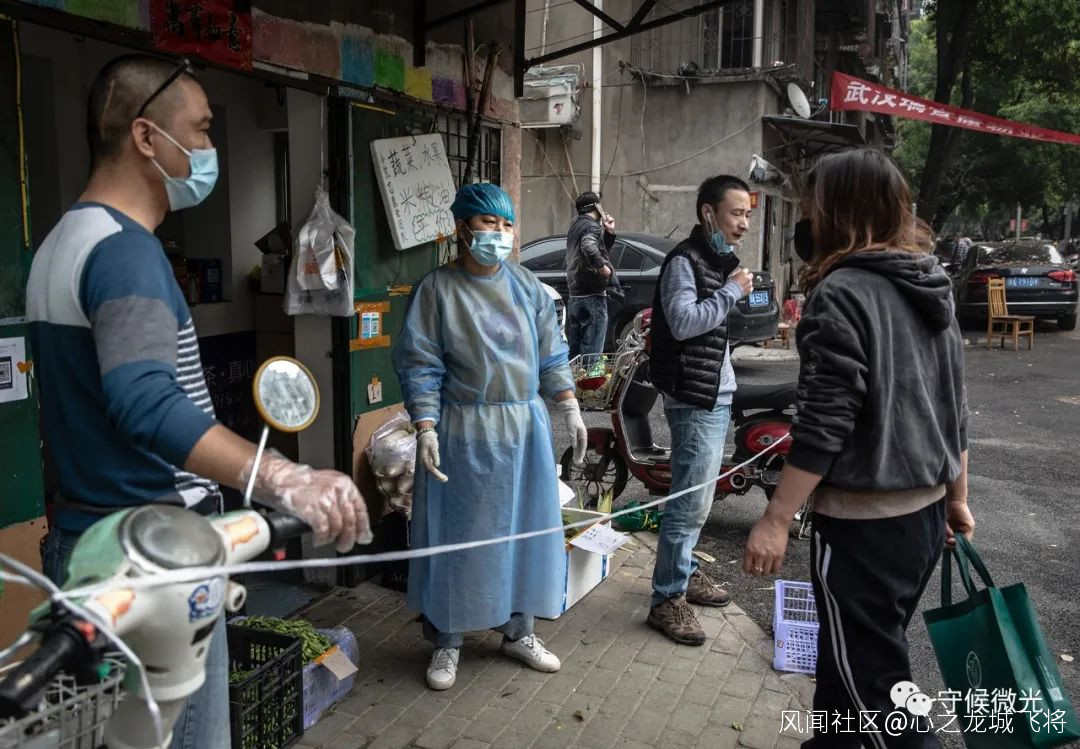 3月24日,武漢市江漢區漢來廣場附近的小區內,幾名做批發零售的住户。中青報·中青網記者 李雋輝/攝