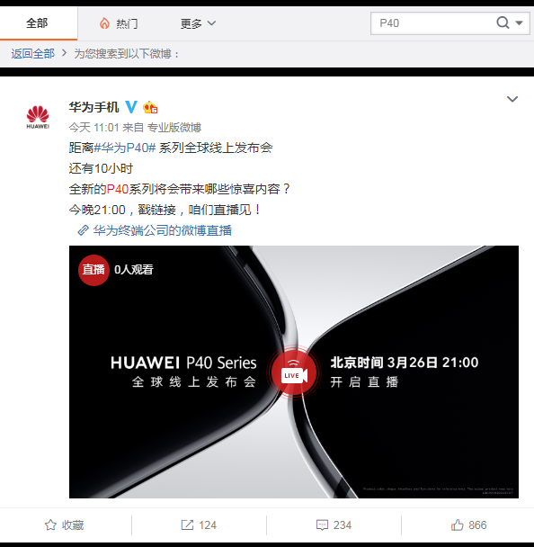華為手機官博下,現在涉及P40的微博其實只有7條