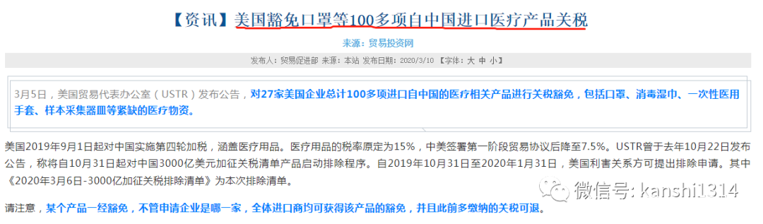 歐美政府真的不重視口罩問題嗎?恰恰相反。美國政府發現疫期在本國加重後,做的第一件事情就是豁免口罩等100多項自中國進口醫療產品的關税。而不再督促大家去洗手。但是中國企業生產口罩需要一個過程,美國的口罩緊缺問題一下子就凸顯出來。