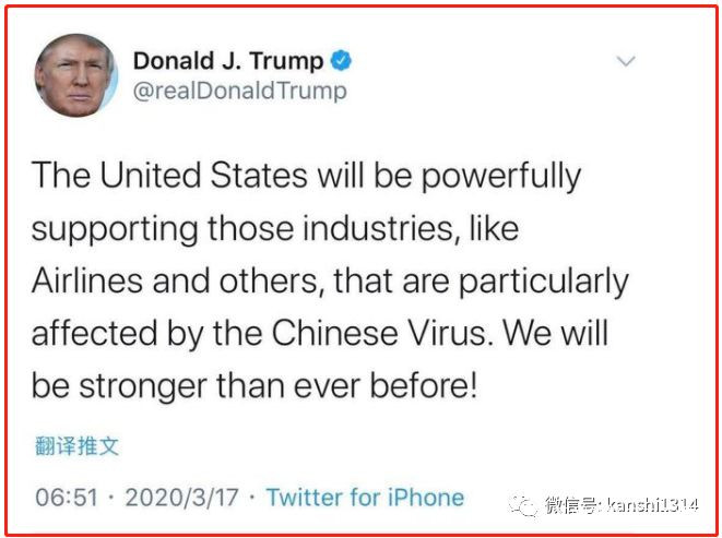 傲嬌的美國總統很快就作出了“頗具個人風格的反擊”。隔日早上六點多,特朗普迫不及待的發了一條針對性極強的社交媒體言論。公開將新冠病毒稱為“中國病毒”。這個事情一直持續到最近才因為政治壓力而改口。