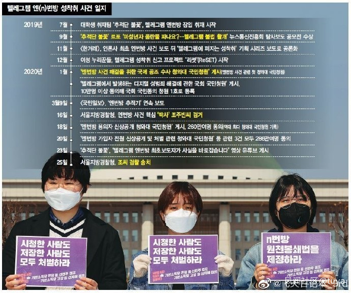 11月,在最初報道“n號房間”事件後,<韓民族日報(한겨레)>報社開啓“Telegram中氾濫的性剝削”系列報道,引起社會共議