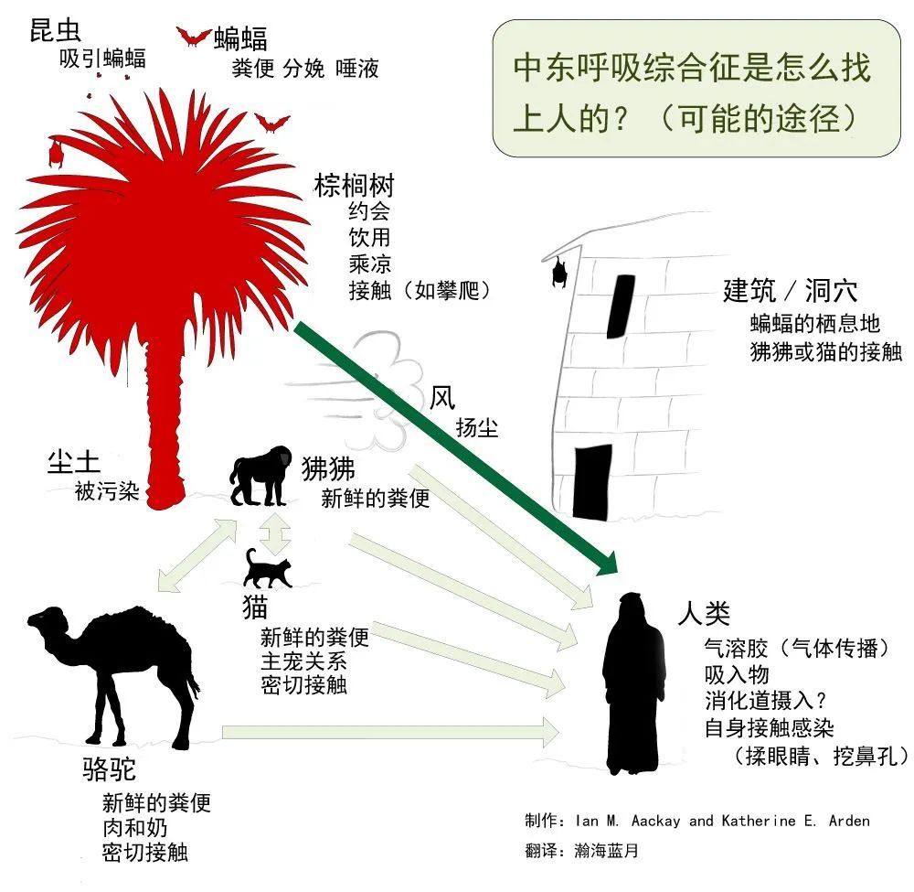 圖3. MERS病毒由蝙蝠傳播到人的各種途徑 | 圖片來源於網絡