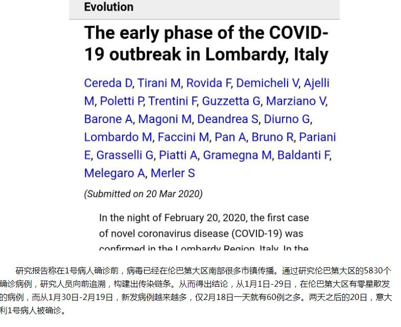 同樣是3月26日安莎社報道《安莎社:1月1日起新冠病毒就開始在意大利倫巴第傳播》,如下圖文節選: