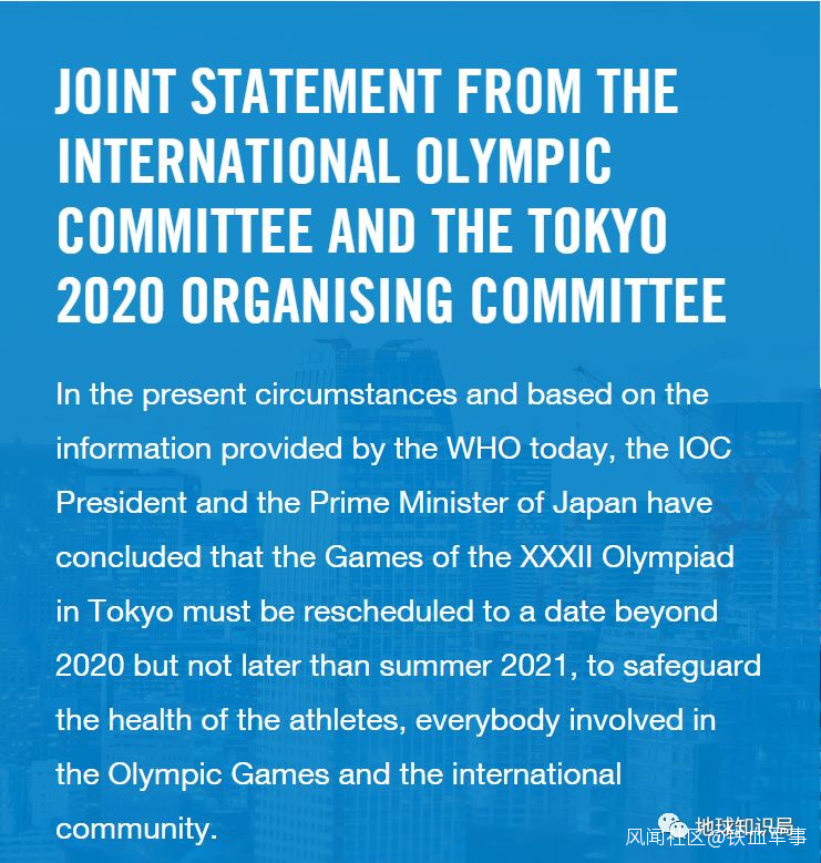 目前情況已經確定,2020年夏季奧運會最晚推遲至2021年,屆時的具體舉辦流程仍在商議中……