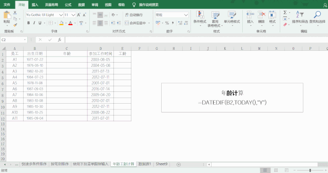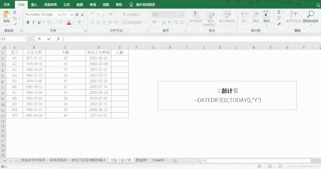 年齡、工齡等的計算我們經常遇到,有沒有什麼函數能幫助快速計算呢?