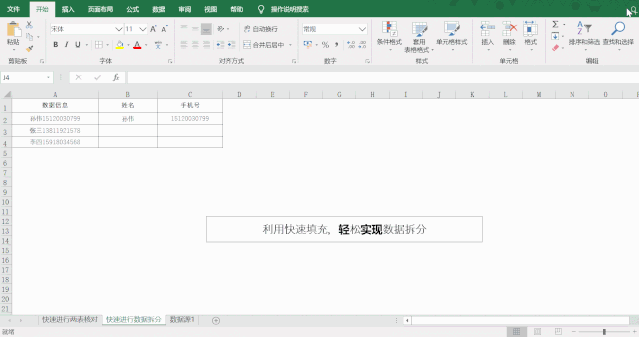 利用快速填充,可輕鬆實現數據的拆分合並。