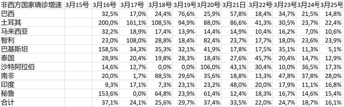 然後是南非也增長很快。但它的基數尚小,比起巴西和土耳其,還有五六天的距離。晚一些再重點關注。