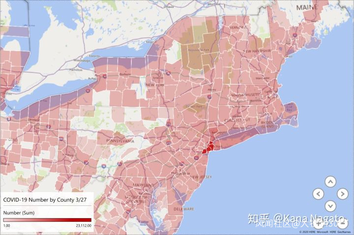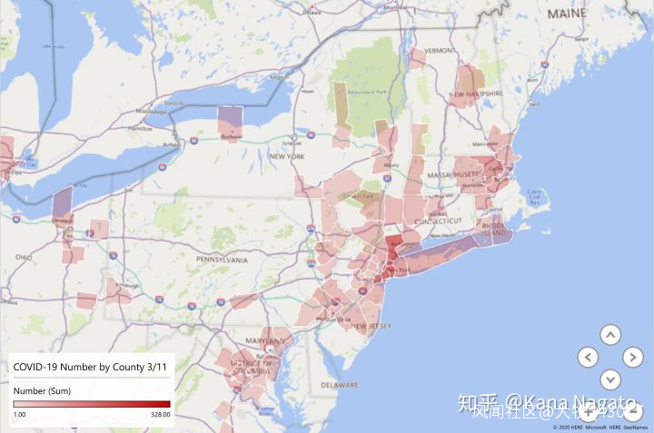 3/27全美分郡縣感染人數圖這是3/11紐約周邊(東北城市帶)的分郡縣感染人數圖