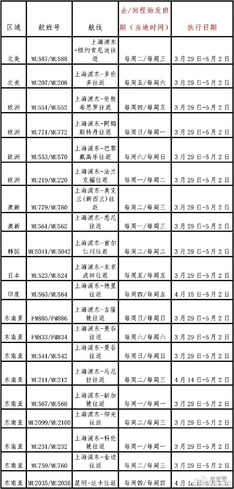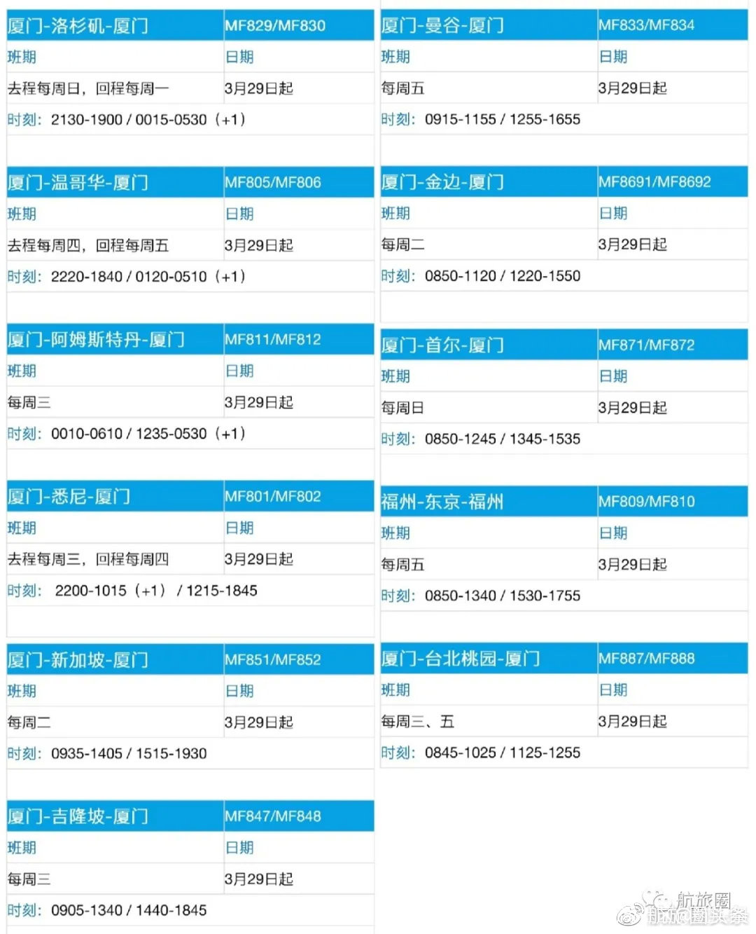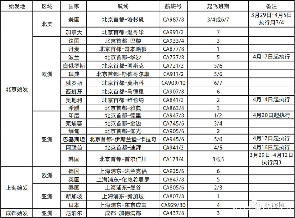 國航、東航、廈航和吉祥航空發佈根據民航局26日規定調整後的最新國際航班時刻表。