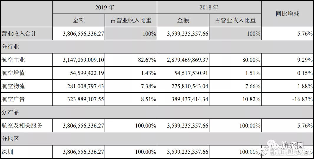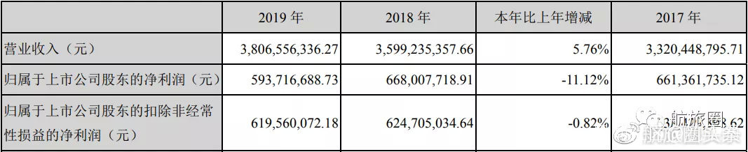 深圳機場2019年營業收入38.07億元,同比增長5.76%。歸屬於上市公司股東的淨利潤5.94億元,同比減少11.12%。歸屬於上市公司股東的扣除非經常性損益的淨利潤6.20億元,同比減少0.82%。