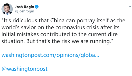 然而,比起“美國之音”和美國國務院官員的這種“自娛自樂”,美國《華盛頓郵報》的反華鷹派記者Josh Rogin反倒是撰文抨擊美國政府“只顧着自己,卻忘記的其他國家”。