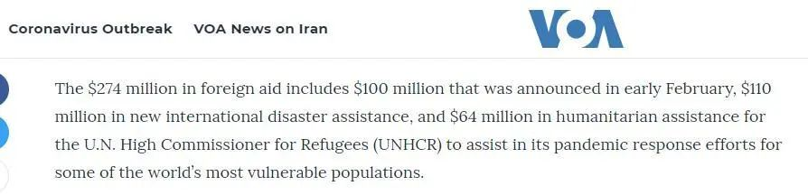 根據美國政府的官方喉舌“美國之音”的説法,美國國務卿蓬佩奧於當地時間週四宣佈了這2.74億美元的對外援助。
