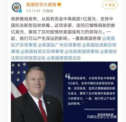 值得注意的是,這2.74億美元中有1億美元,其實是在2月初被蓬佩奧吹噓為“援助給中國”的那筆錢。
