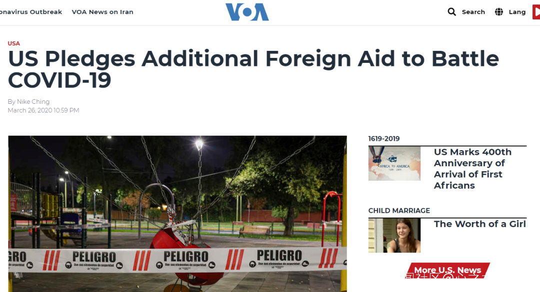 不過,“美國之音”倒也毫不掩飾地在其報道中針對中國,稱“美國政府新承諾的對外援助是在中國增加其對疫情嚴重的國家的援助時出台的”。這家美國官方的喉舌還不忘貶損中國的援助,一邊引用美國國務院官員的話稱全球的新冠疫情“是中國造成的”,“中國有責任提供援助”,一邊又引用該官員的話強調“美國是世界上最大的衞生和人道主義援助國”。