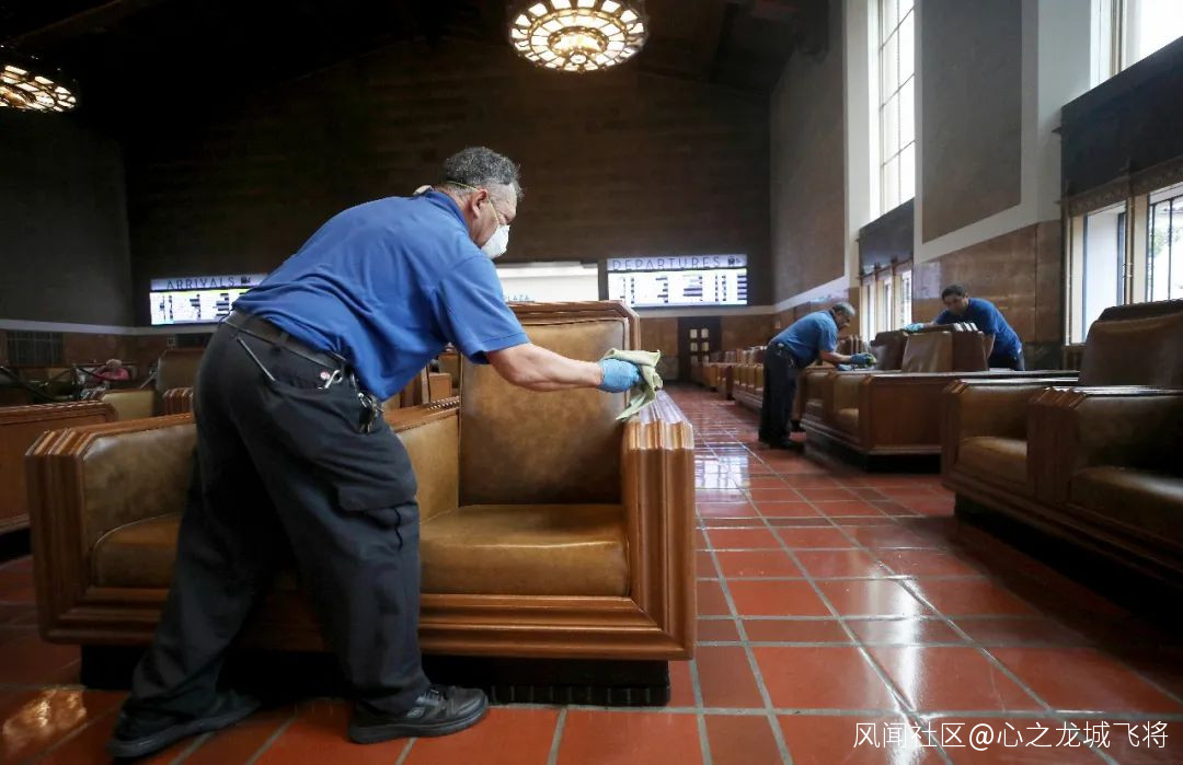 3月13日,美國加州洛杉磯聯合車站的工作人員對候車區的座椅進行消毒 3月13日,特朗普終於宣佈美國進入全國緊急狀態。這意味着聯邦政府可以動用高達500億美元的資金投入與抗疫有關的活動,並能暫時緩解民眾對高昂的檢測與治療費用的恐慌。然而美國本土疫情的升級還遠未結束:3月16日,倫敦帝國理工學院發佈的一份長篇研究報告認為,由於錯過了抑制疫情的最佳時間窗,美國目前只能採取降低高峯期醫療需求的緩解策略,全國患者死亡人數將在4〜6月間達到峯值。