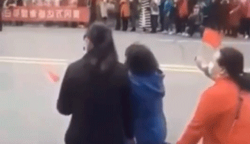 她們舉起紅旗,一邊揮手,一邊高喊:謝謝你們!