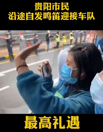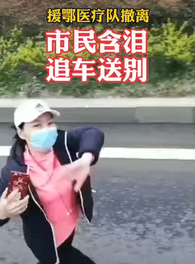 在援鄂車隊駛離的時候,含淚追車送別:謝謝你們……