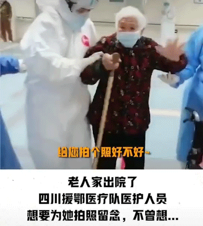 出院前,醫務人員想和奶奶合影一張。