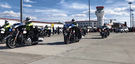 車道清空,百餘架摩托車一路護航。