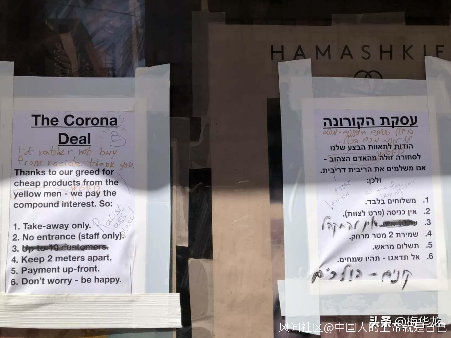 以色列餐廳貼歧視告示:不要貪戀黃種人的便宜貨,病毒就是代價!_風聞