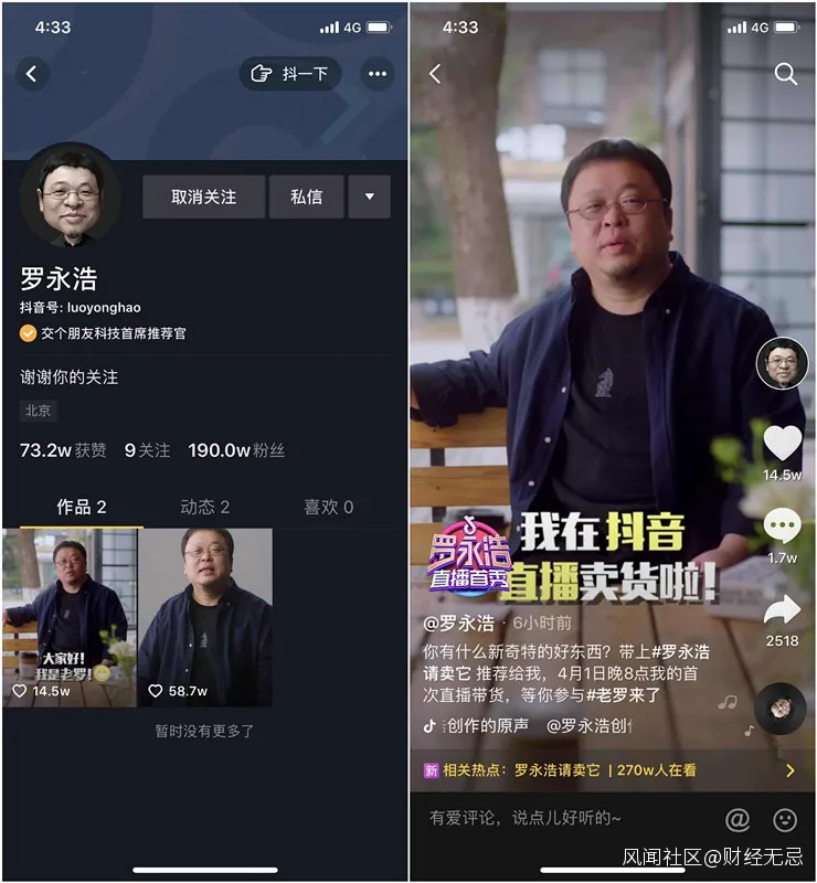 這或許是近來抖音粉絲增長最快的賬號。背後是洶湧的用户需求、抖音的流量加持和老羅的號召力。