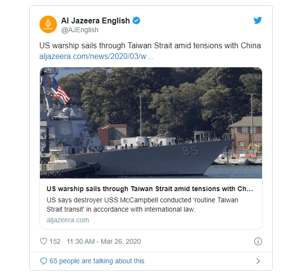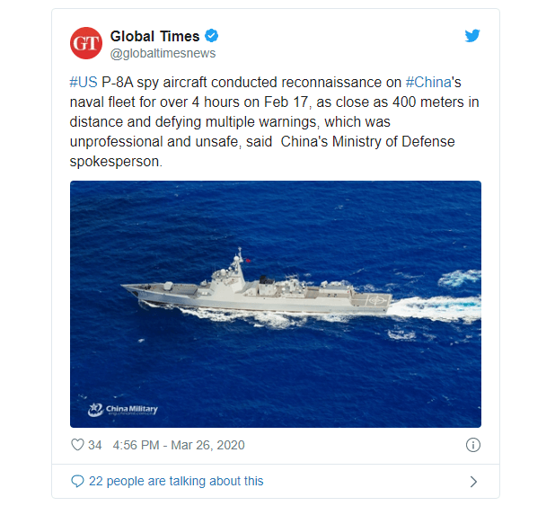 自疫情在中國爆發以來,幾乎每天都有美軍飛機、轟炸機和戰艦包圍中國邊境。美國不僅試圖利用這一流行病來阻止中國與國際貿易的往來,而且一直在以軍事部署來挑釁和威脅中國,直到今天。