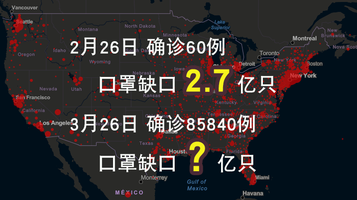 一個月過去了,截止美國3月27日已經累計確診85840例。不知道現在口罩和個人防護用品的缺口達到多少了?