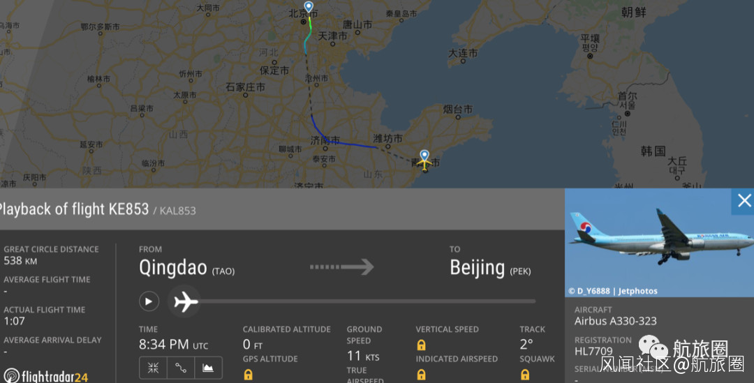 另外一家韓國航空公司韓亞航空也有北京航班,此前使用載客量較低的A321執飛首爾仁川飛往北京的OZ333航班,選擇了大連作為指定第一入境點。