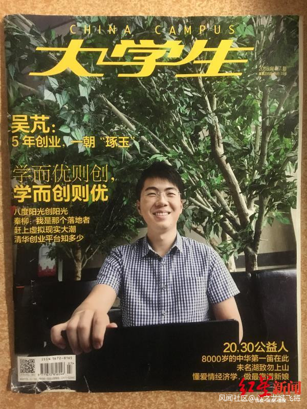事實上,這並不是吳芃第一次引起媒體的關注。早在2015年他還在國內讀書時,他便因為自己的大學生創業經歷,而登上了國內《大學生》雜誌的封面。據報道,當時吳芃在上大學後不久,就成立了公司,一年後上線App應用Campus學生團隊管理系統。就讀於社會工作專業的他,組建了一個小團隊,發起“琢玉”計劃,以社會工作的方式幫助大學生就業、創業。